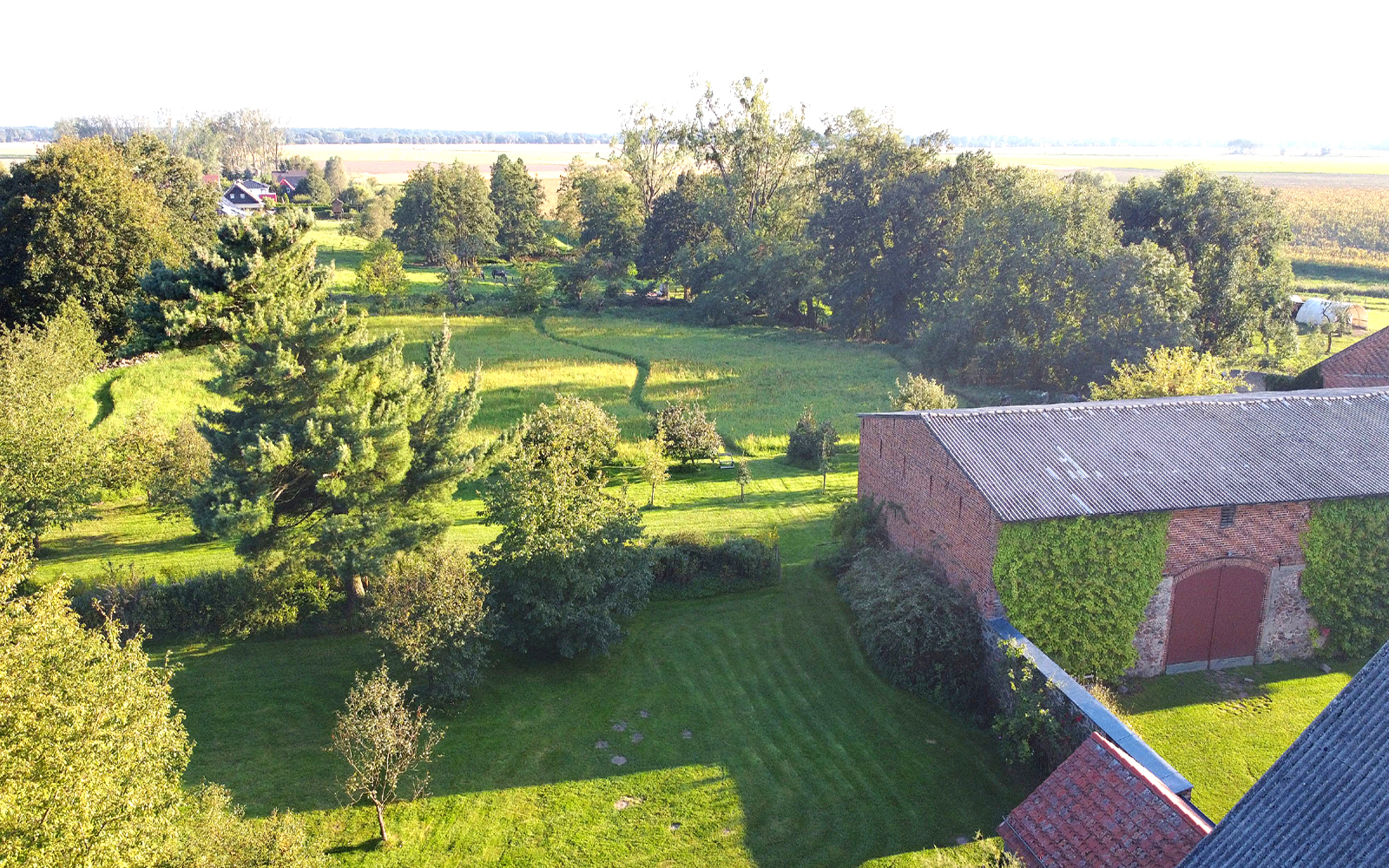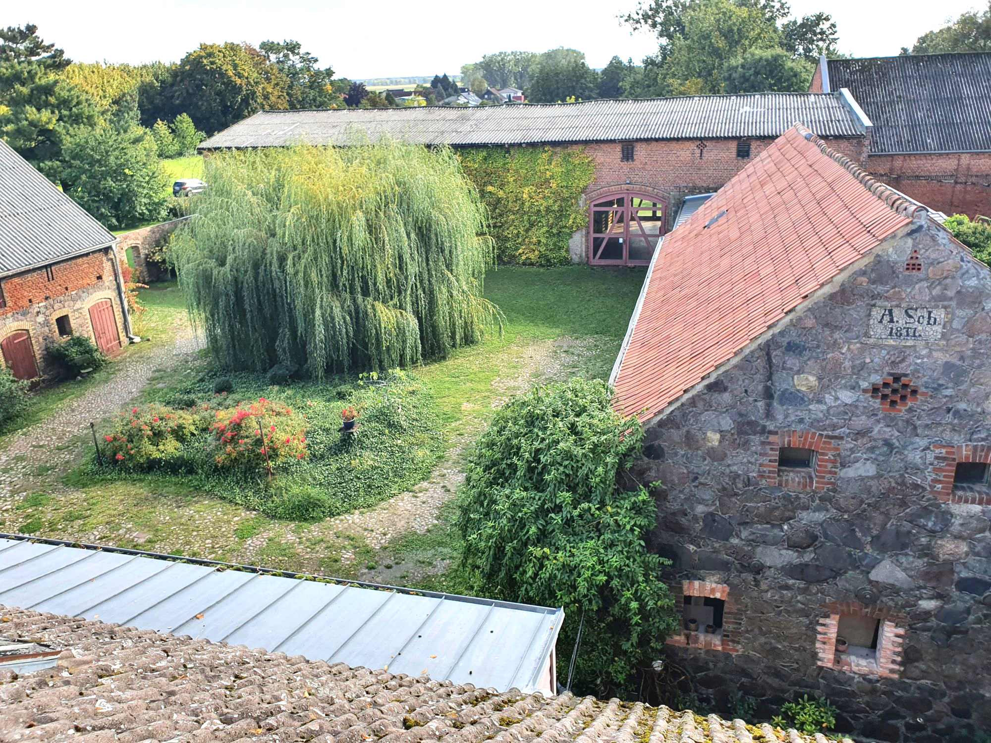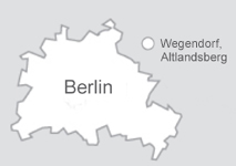 Lage Der Schöppesche Vierseithof befindet sich in Wegendorf, einem Ortsteil von Altlandsberg im Landkreis Märkisch Oderland. Wegendorf ist ca. 18 km nordöstlich von Berlin gelegen und vom Alexenderplatz in 45 Autominuten zu erreichen. Vom östlichen Berliner Ring, Abfahrt Marzahn, sind es etwa 15 km. Die nächste Bahnstation (4 km) ist Werneuchen, mit einer stündlichen Verbindung nach Berlin Ostkreuz. Wegendorf hat einen historischen Dorfkern, eine alte Feldsteinkirche aus dem 13. Jahrhundert und ist umgeben von Feldern und Wiesen. Alte Alleen verbinden es mit Altlandsberg und den umliegenden Dörfern. Der Fängersee, der Bötzsee und der Straussee, mit Badestränden und umgeben von Wäldern, sind in wenigen Minuten Fahrzeit zu erreichen, ebenso der Gamengrund, ein weitläufiges Landschaftsschutzgebiet. Von Wegendorf gelangen Sie auch auf den Fernwanderweg E 11 oder den 66-Seen-Wanderweg, die Sie weit in die märkische Landschaft östlich von Berlin, über die Märkische Schweiz bis in den Oderbruch führen. Für viele unserer Gäste aus dem In- und Ausland ist die Gegend eine Entdeckung, die sie begeistert.