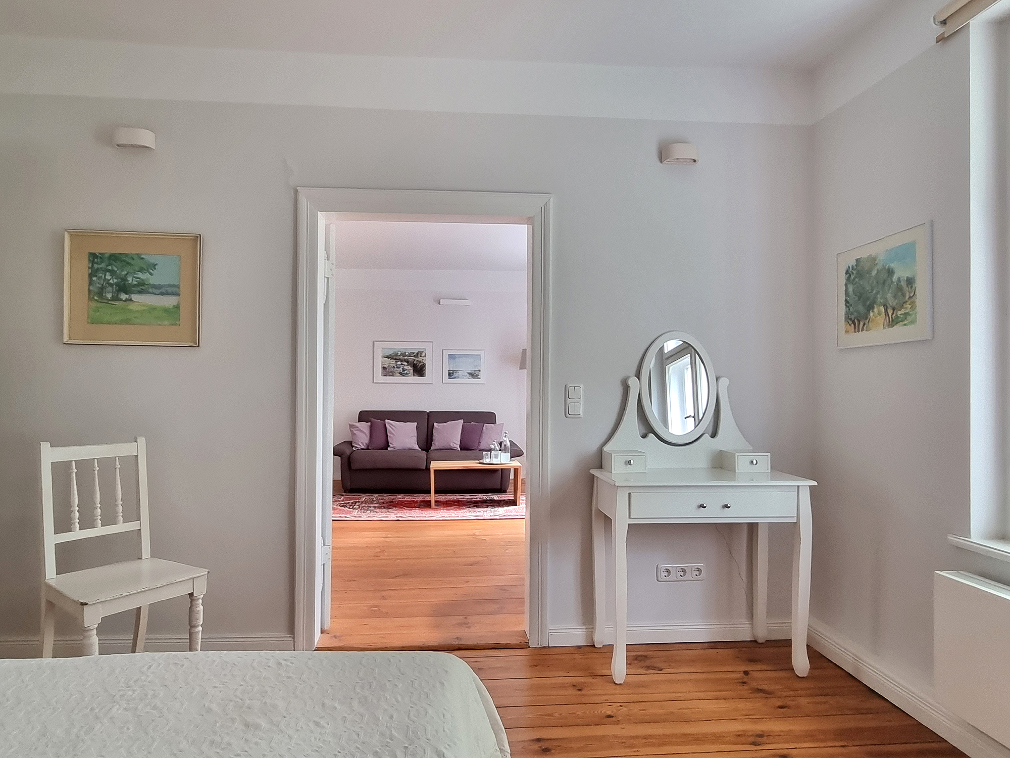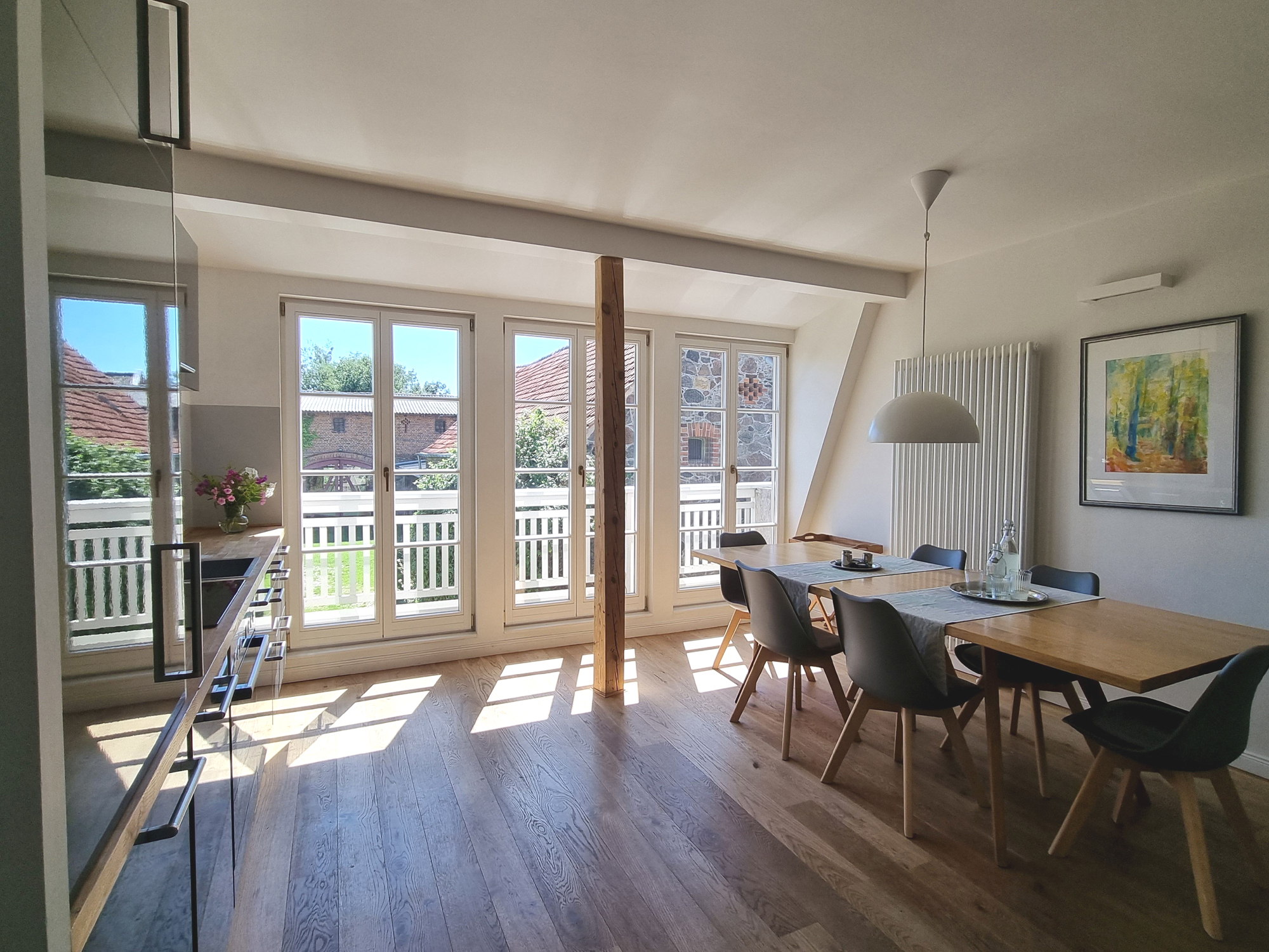 Wohnungen Falls Sie auf dem Hof ebenso schön wie bequem übernachten wollen, stehen Ihnen im Haupthaus und im Leutehaus 4 Ferienwohnungen - mit insgesamt 26 'Betten' - zur Verfügung. Die Wohnungen sind hochwertig, mit modernen und antiken Möbeln, Natursteinbädern sowie großen Wohnküchen ausgestattet. Hier können Sie mit Ihren Familien und Freunden eine schöne Zeit auf dem Land verbringen, gemeinsam kochen, essen, spielen, ausschlafen, den Vögeln lauschen, Früchte naschen, im Gras dösen, die Seele baumeln lassen... Die Ferienwohnungen sind ideal, um von hier das Seenland Oder-Spree mit unzähligen Seen, Wäldern und Wanderwegen, die Märkische Schweiz, den Oderbruch zu erkunden - oder einen Abstecher nach Berlin zu machen... Und unsere Seminargäste nutzen die Wohnungen, den Kutschflur und den Garten für entspannte Firmen-Retreats in anregender Atmosphäre...
